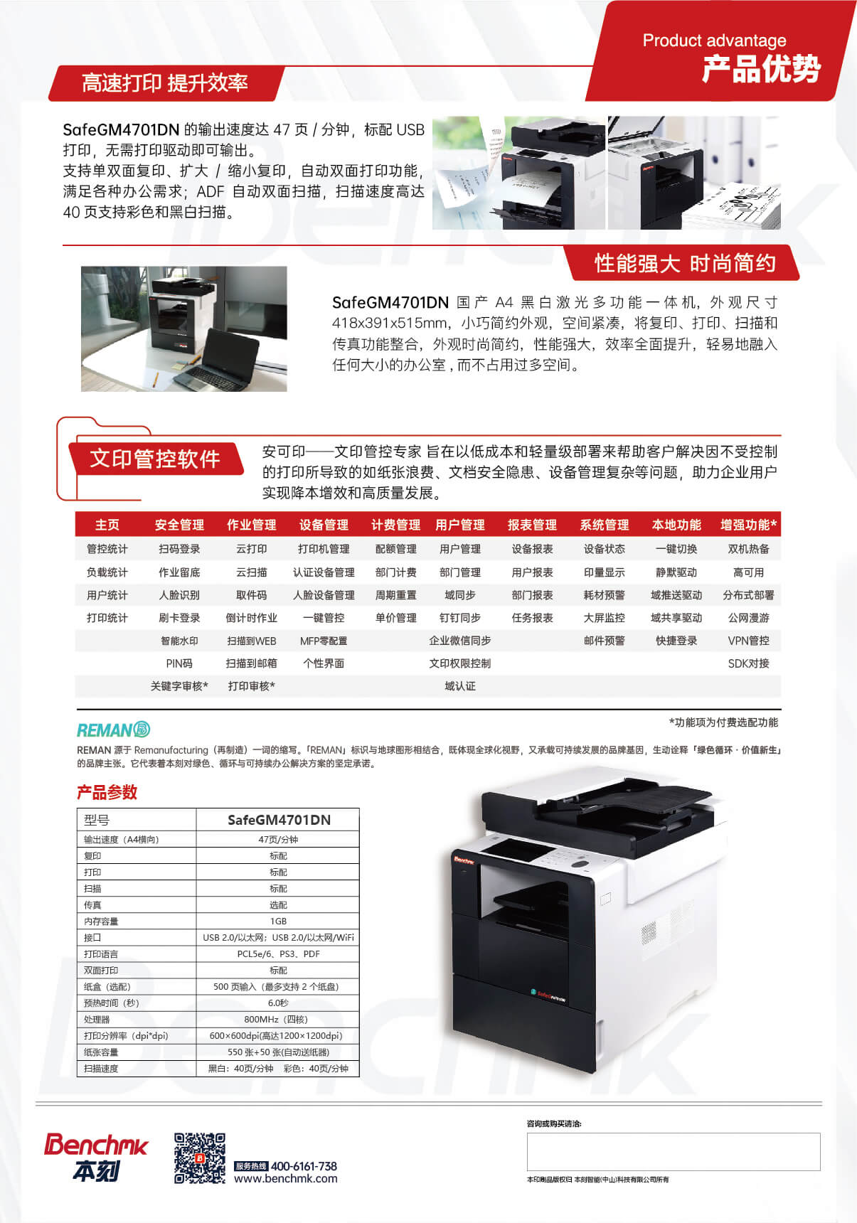 | 输出速度(A4横向) | 黑白:47页/分钟 | |
